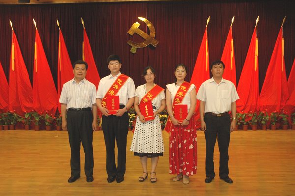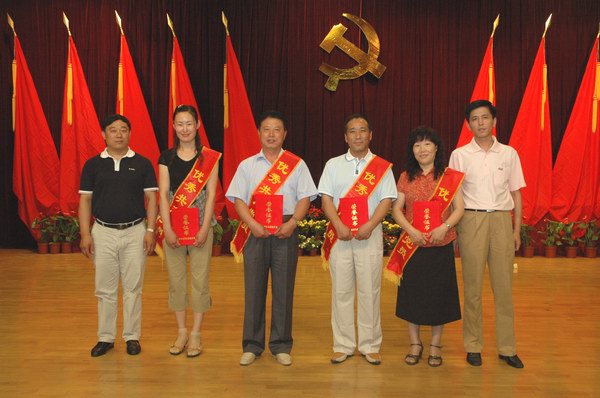 关尚敏书记与教育厅副厅长迟学智为优秀党员颁奖并合影