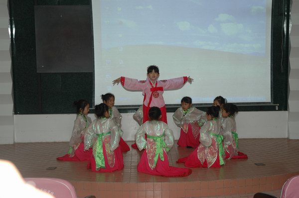 孩子们准备好接待韩国代表团