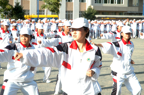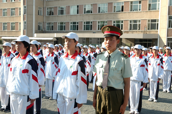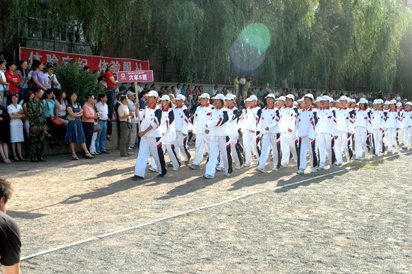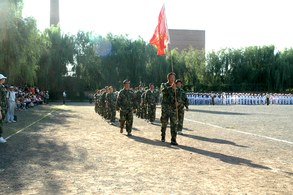 军训归来接受老师与家长的检阅