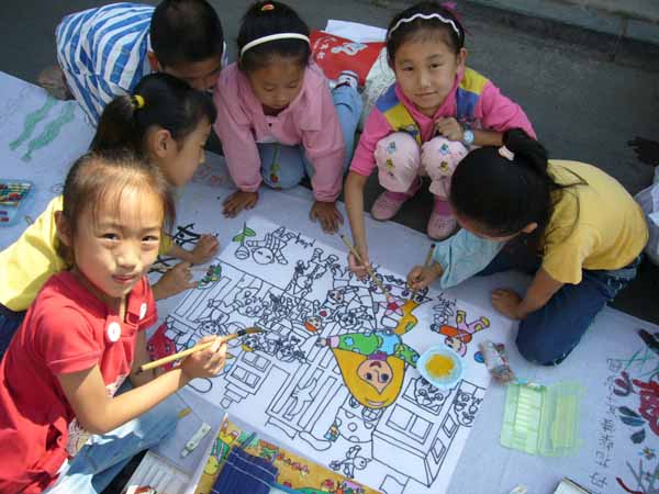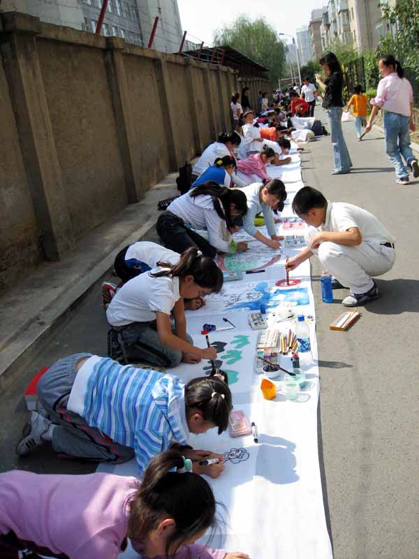 近日,我校小学部部分学生参加了由美术组组织的“期盼奥运,喜迎校庆”百米长卷大型活动,同学们运用手中的画笔描绘了心中美丽的画卷,充分表达了学生们对祖国的热爱,对2008年北京奥运会的期盼心情,和对校庆二十三周年的祝福,整个活动参与的同学近200余人,场面壮观热烈吸引了众多家长,社区市民前来参观。充分体现了小学部美术学科的特色,以及同学们的绘画水平。此画卷将作为本部向高新学校庆典的一份献礼!
