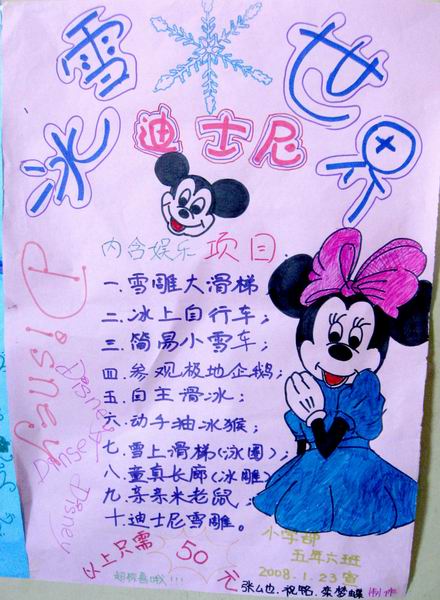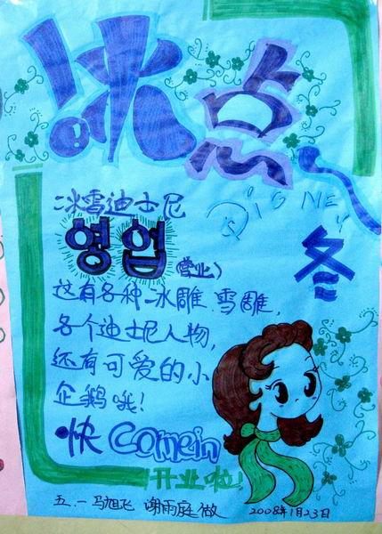 “冰雪乐园”主题海报终于和大家见面了,这是寒假的冬令营活动中,3至5年级学生参观南湖的冰雪乐园后的亲身感受,并由美术老师李乐指导。