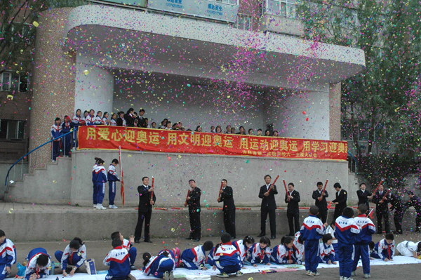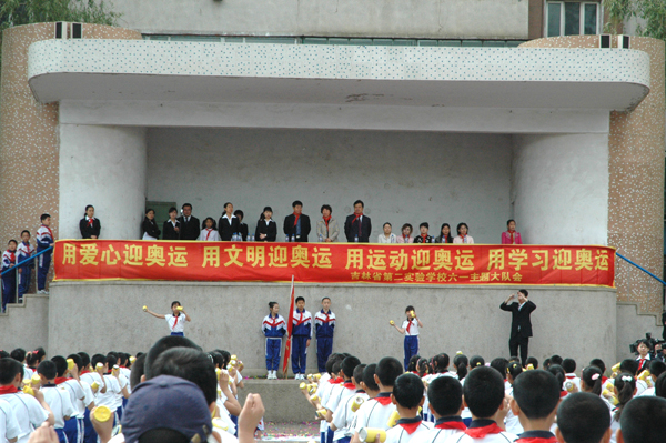 2008年5月30日上午,我校南湖校区小学部在操场举行了一次主题为“用爱心迎奥运 用文明迎奥运 用学习迎奥运 用运动迎奥运”六一主题大队会。本次大队会紧紧围绕“喜迎奥运”和“情系灾区”两大主题进行。通过表彰奥运娃娃、奥运最佳班集体和在抗震救灾中表现突出的同学对全校同学进行了一次深刻的教育。大队会上还进行了模拟圣火采集、传递、迎奥运百米长卷、各年级个性集体操展示和班级迎六一作品展。吉林教育电视台、城市晚报对此项活动进行了报道。