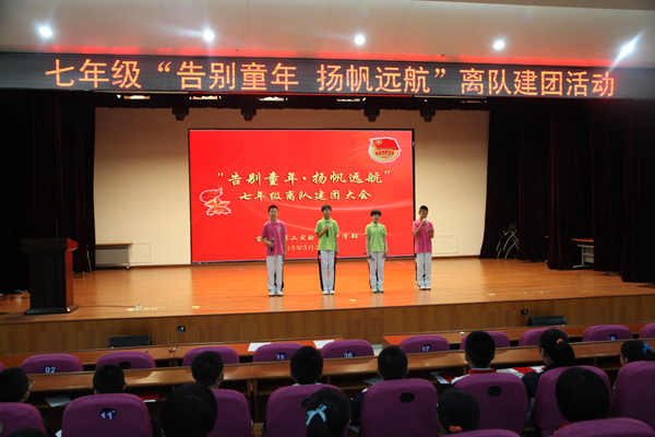 5月29日,中学部七年级全体师生相聚一堂,在报告厅举行了以“告别童年˙扬帆远航”为主题的离队建团仪式。仪式共分“摘下红领巾,告别童年”、“加入团组织,扬帆远航”两个篇章。出席活动的领导有中学教导处张连峰主任、七年级年级组长郭天景老师。
