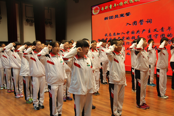 接下来,团委书记宣布建团决定,七年级年级组长郭天景老师宣布第一批团员名单。“我们是五月的花海,用青春拥抱时代;我们是初升的太阳,用生命点燃未来。‘五四’的火炬,唤起了民族的觉醒。壮丽的事业,激励着我们继往开来……”当雄壮的共青团团歌响起时,同学们再一次热血沸腾了,他们真正地告别了童年时代,成为一名名副其实的青少年,同学们长大了。