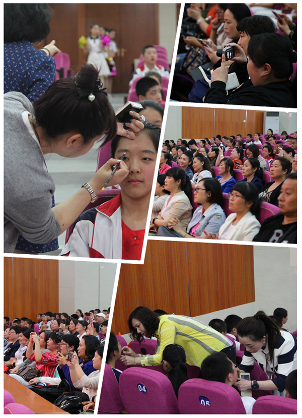 关注细节——于春婷老师帮助即将上台表演的学生们整理着装