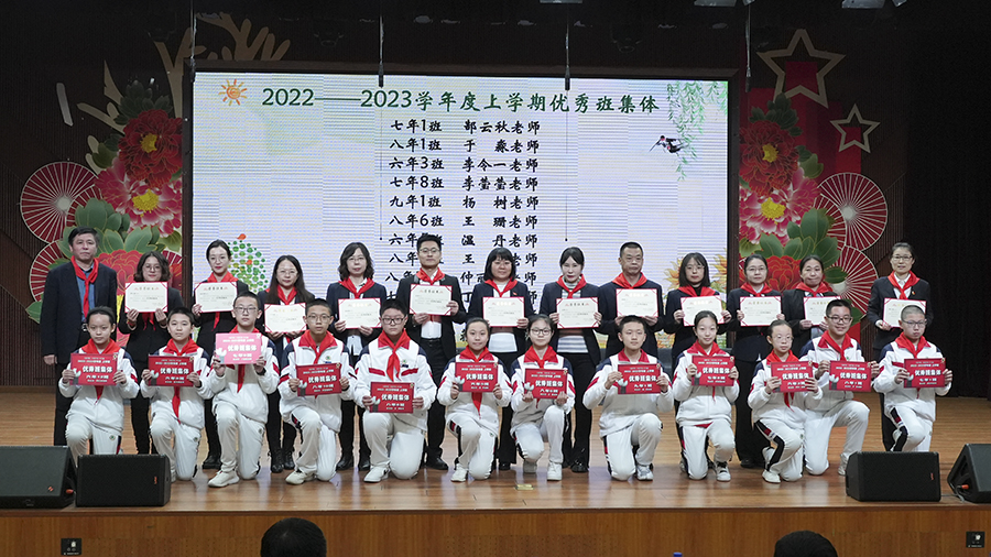 彼此关爱,伙伴携手共进,凝心聚力,共筑集体荣光。开学典礼上表彰了2022-2023学年度上学期“优秀班集体”和“最佳年级组”。评优表彰树榜样,引领示范共成长,新学期,让我们怀揣着美好的愿景,收获更多闪亮的回忆。
