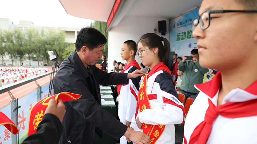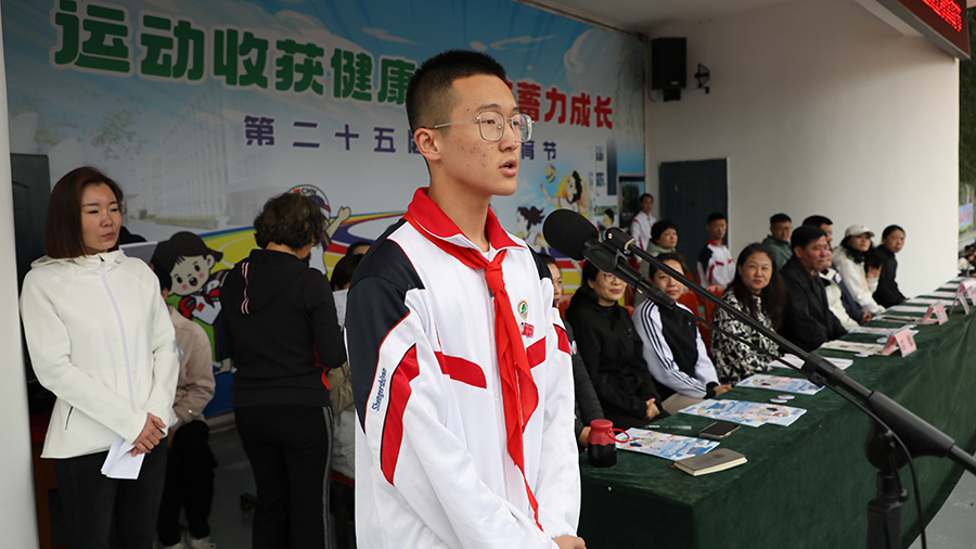 中学部于泽主任致开幕词,邀请全体教师、家长见证同学们的运动成长和身心健康,鼓励省二少年要不服输,在任何赛场上都要团结一心,努力拼搏!第二十四届金秋体育节五星运动员九年3班于子博同学代表全体运动员讲话,他讲述自己的运动经历,热爱打篮球的他是班级中比赛项目报的最多的同学,他愿意和同学们一起坚持运动,拼搏赛场,在汗水中成长,在挑战中懂得超越。助力学生成长、支持学校教育的家长代表八年9班夏梓涵同学的母亲金莲花女士表示,作为家长,定会积极鼓励孩子参加体育运动,与他们一起享受运动,共同见证他们的成长与蜕变。