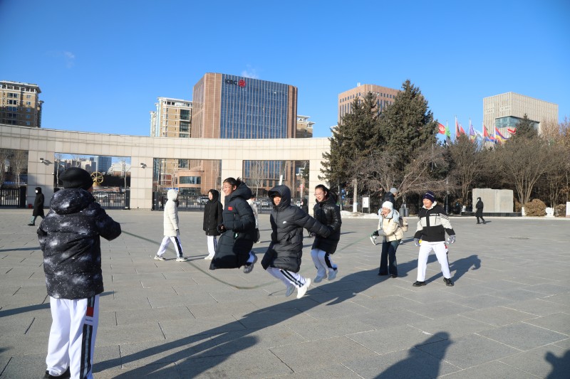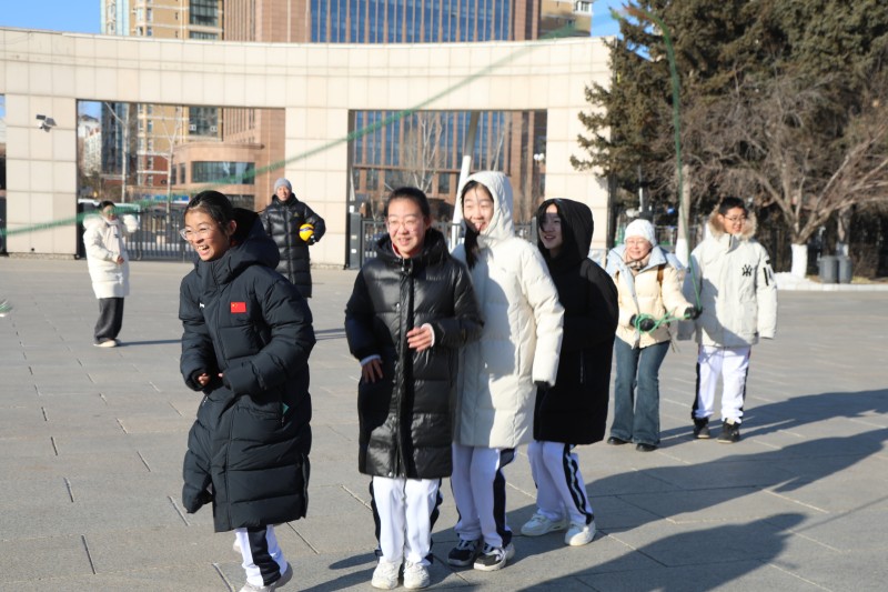 师生同行且同形,我们的老师也积极与学生互动,参与其中感受运动的乐趣。“一点都不冷,看着学生撒欢儿太有趣了。”为同学们摇大绳的南湖中学教导处副主任于春婷老师激动地说。